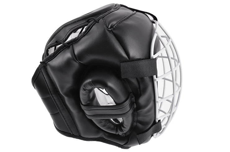 Casque de karaté complet avec grille de protection.